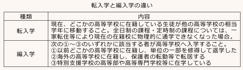 せっかく高等学校に入学したけれど、別の高等学校への転入学・編入学を考えている人もいるかもしれません。