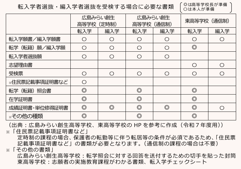 転入学者選抜・編入学者選抜を受検する場合、次の書類を準備する必要があります。