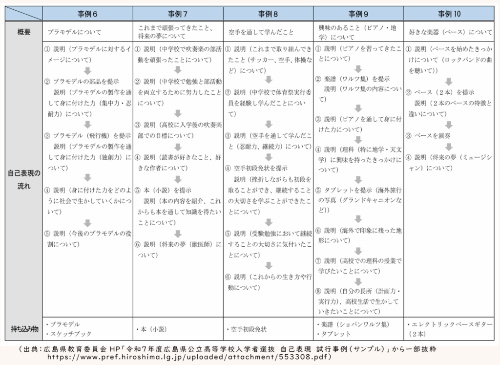 令和8年度の広島県の公立高等学校入学者選抜の実施内容の一つに自己表現があります。自己表現は一次選抜と二次選抜の両方で実施されます。